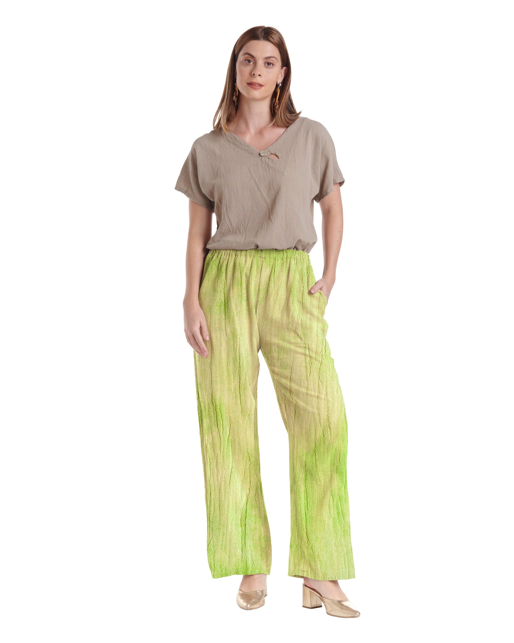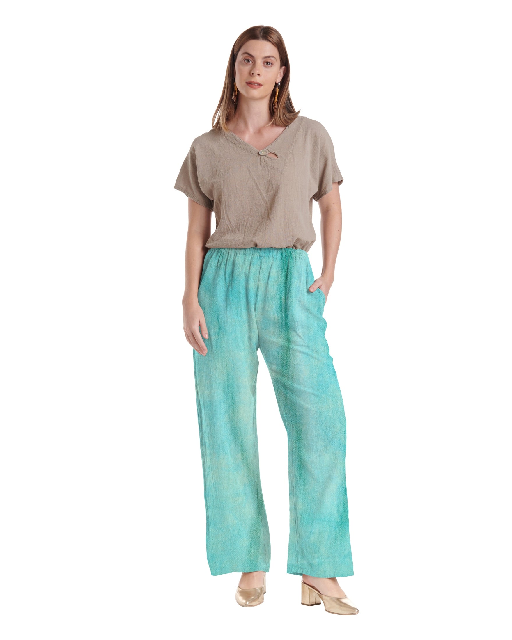 A timeless favorite, elegant long straight cotton gauze pant, tailored for a sleek silhouette and featuring inset front pockets for understated sophistication and functionality.