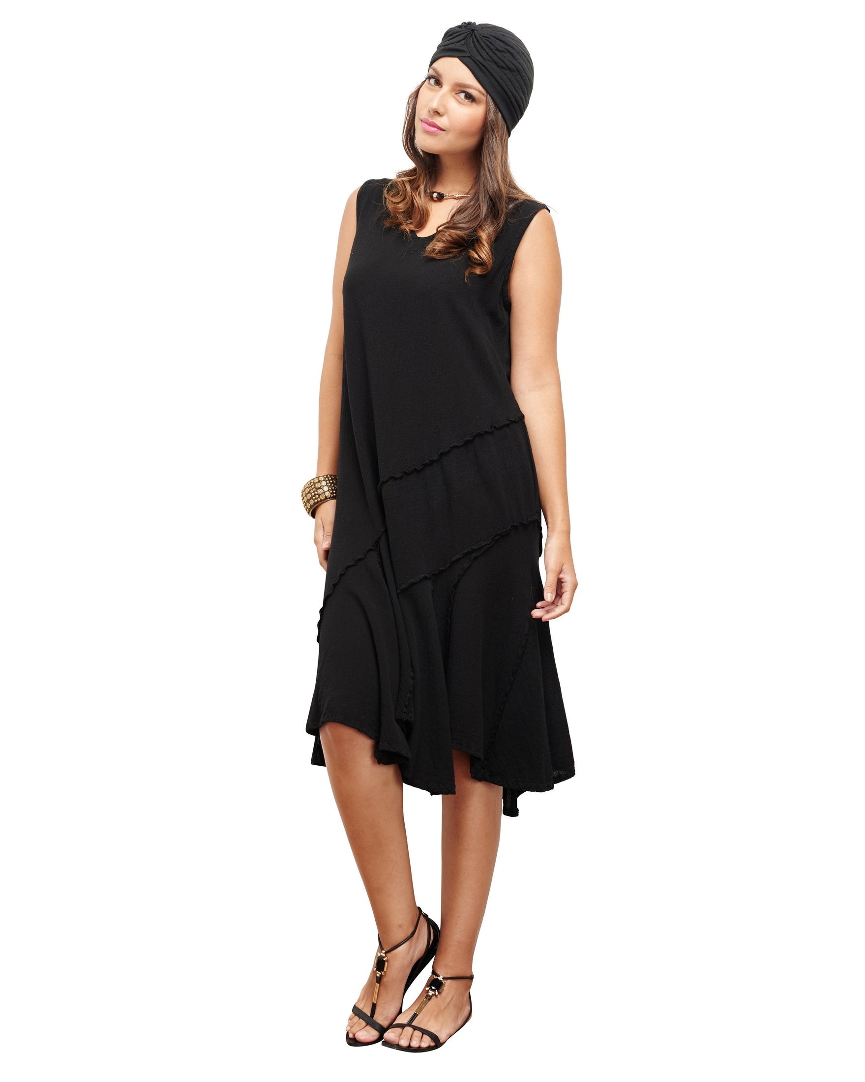 A simple, sleeveless cotton gauze dress with ruffle detail at the bottom. A gauze lover's favorite!