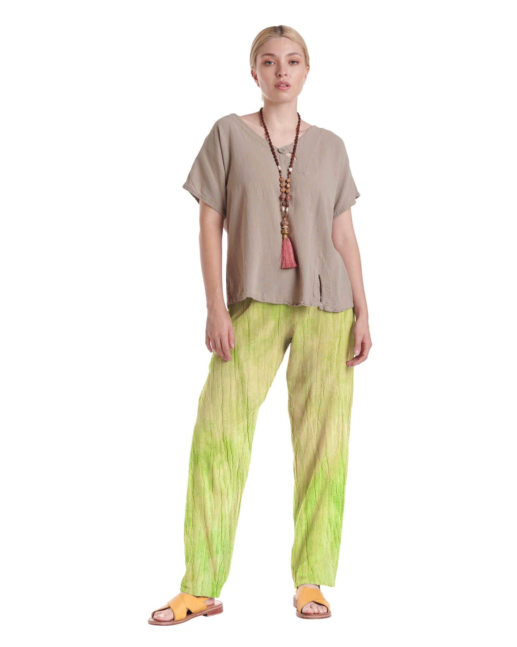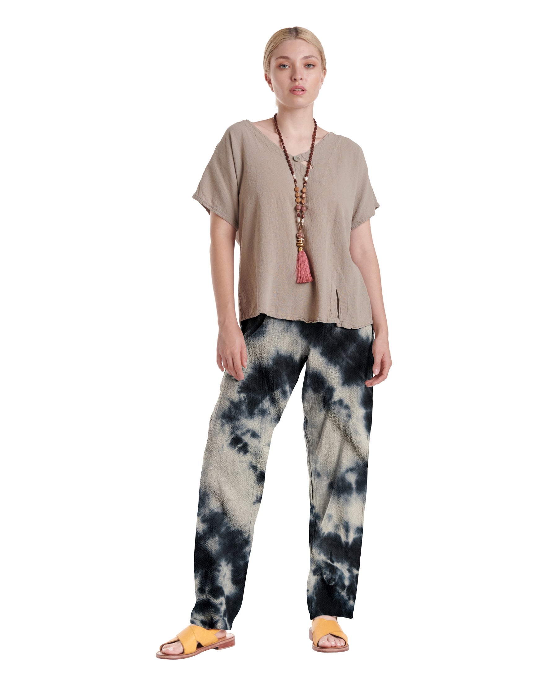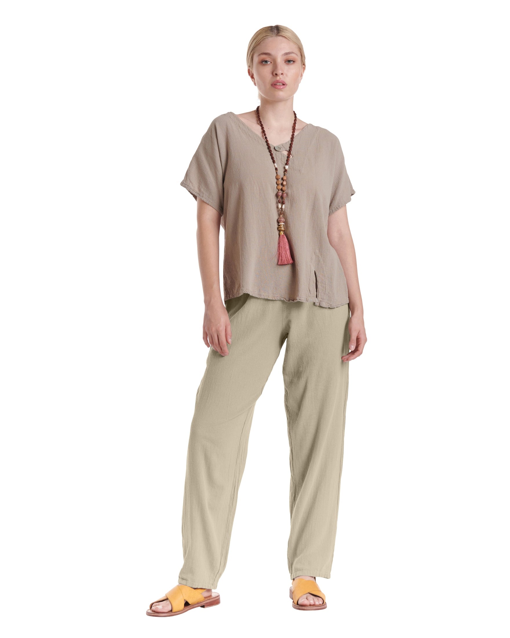 A simple cotton gauze pant with a subtly tapered leg that flatters your figure while adding a modern touch, making these pants effortlessly versatile for dressing up or down on any occasion.